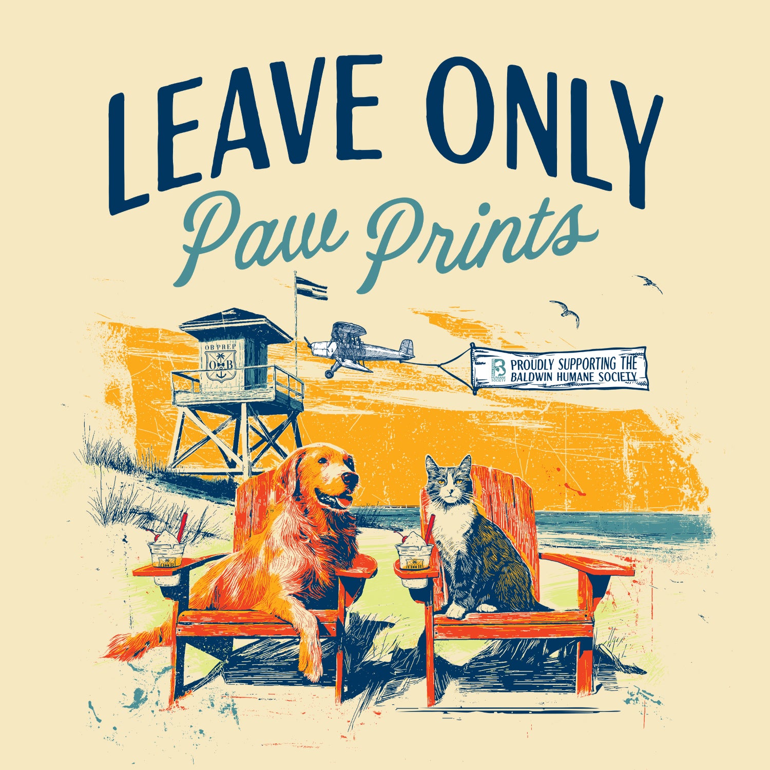 Show your love for animals in need and the heroic efforts of the Baldwin Humane Society with our ultra-soft Leave Only Paw Prints tee. A portion of proceeds benefits the Baldwin Humane Society, supporting rescue and care for animals in need.